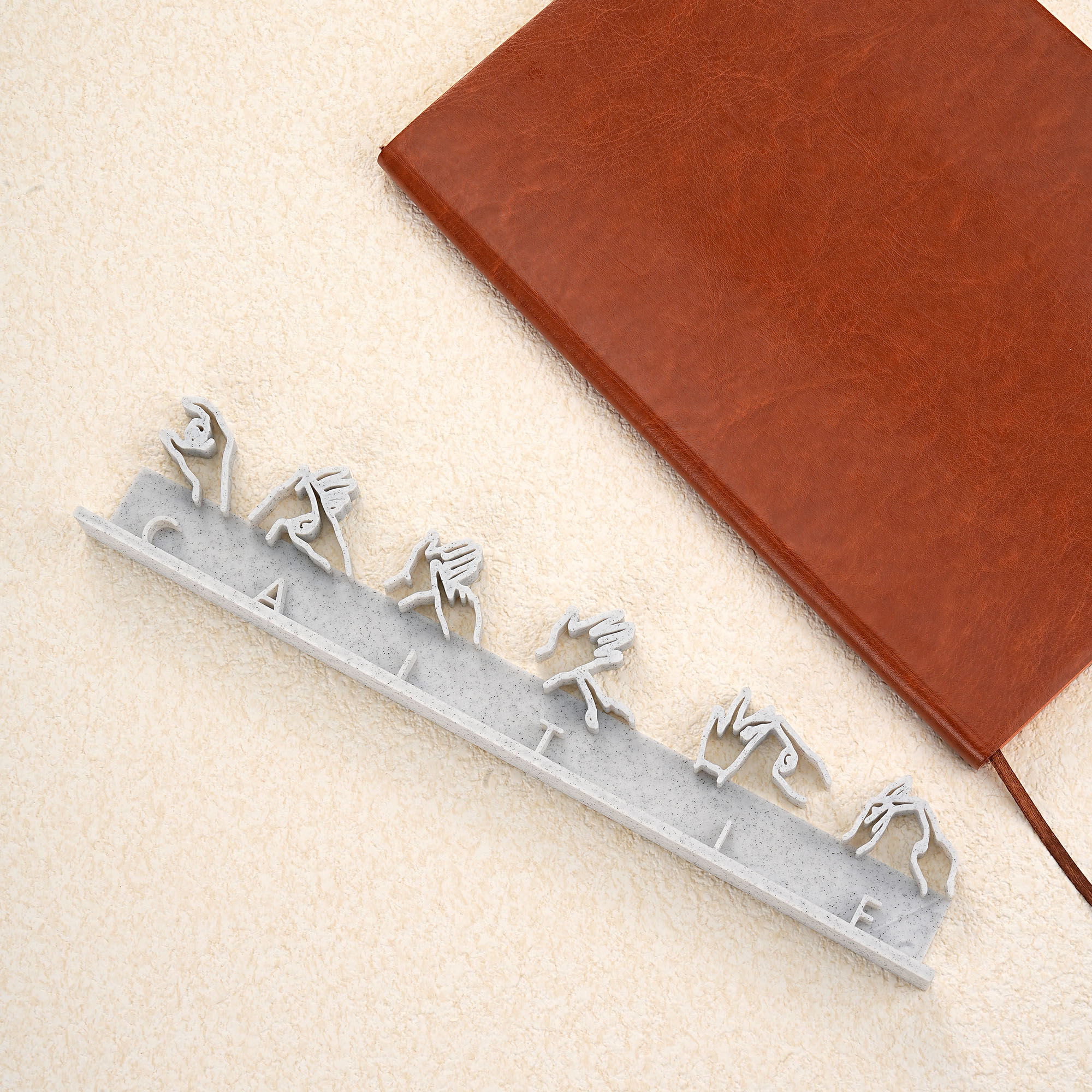 Precision 3D Printing - The use of BSL gesture letters gives this desk name plate a striking and meaningful look. Advanced 3D printing PLA ensures fine details are captured with accuracy, presenting your name or message in a clear and recognizable form.